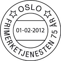 Seit 75 Jahren kümmern sie sich um die Belange der Philatelisten in Norwegen und aus dem Ausland, gemeint ist der Philatelie-Service der Norwegischen Post. Zu diesem Anlass erscheint zum 1. Februar 2012 ein schlichter Sonderstempel, der für Postmotiv-Sammler vielleicht von Interesse sein könnte. Aber Eile ist geboten, Ihre Belege müssen bis zum Erscheinungstag in Norwegen vorliegen bei: Posten Norge AS, Frimerketjenesten, Postboks 9350 Grønland, 0135 OSLO. Porto: Karte und Brief 13.00 nkr (A-Post) / 12.00 nkr (B-Post).