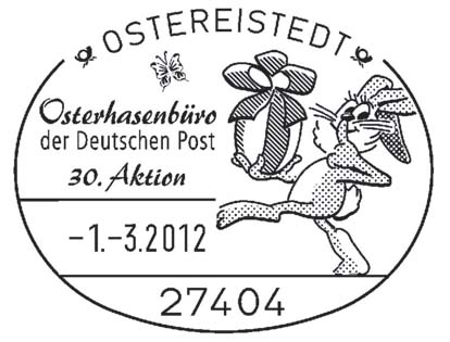 Schon an die Ostereier gedacht? In wenigen Wochen müssen sie gelegt sein. Hanni Hase arbeitet bereits fleißig an den Vorbereitungen zum Fest. Als Partner hat er wiederum die Deutsche Post gewonnen, die wie in den Vorjahren auch 2012 ein Osterhasenbüro einrichtet. Dort beantwortet Hanni Hase Post von großen und kleinen Kindern. Seine Briefe gibt er mit einem passenden Stempel auf die Post. Hannis Anschrift steht im März-Heft des BRIEFMARKEN SPIEGEL, in der Rubrik „Stempel Deutschland“.