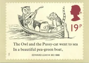Dafür hat er sich als Meister der Nonsens-Literatur unsterblich gemacht: 1967 veröffentlichte er sein bekanntestes Gedicht, „The owl and the pussycat“, 1871 publizierte er „More Nonsense“, 1876 seine „Laughable Lyrics“. Im deutschen Sprachraum wandelten zum Beispiel Christian Morgenstern, Ringelnatz, Heinz Erhardt oder Robert Gernhardt auf Lears literarischen Spuren. Edward Lear starb am 29. Januar 1888, zu seinem 100. Todestag im Jahr 1988 ehrte ihn die Royal Mail mit der Herausgabe von vier Sondermarken.