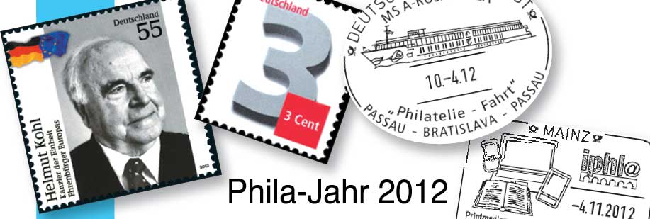 Was bleibt vom zu Ende gehenden Jahr philatelistisch und postgeschichtlich im Gedächtnis? Was gab es Neues in Deutschland? Was kann man in einem Rückblick festhalten? Die Antworten werden unterschiedlich ausfallen, doch BMS-Autor Peter Fischer hat für Sie einen interessanten und durchaus repräsentativen Querschnitt zusammengestellt – von der Helmut-Kohl-Marke bis zum 3-Cent-Ziffernwert, von der philatelistischen Donau-Reise bis zur Literatur-Ausstellung IPHLA. Lassen Sie mit uns das Jahr 2012 noch einmal Revue passieren – im Dezember-Heft ab Seite 16.