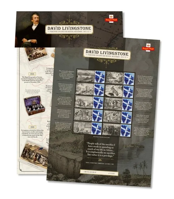 Mit der Herausgabe eines Gedenk-Kleinbogens feiert die Royal Mail den diesjährigen 200. Geburtstag des Afrikaforschers David Livingstone. Der Kleinbogen erscheint am heutigen 1. Mai, dem 140. Todestag des schottischen Arztes und Missionars.