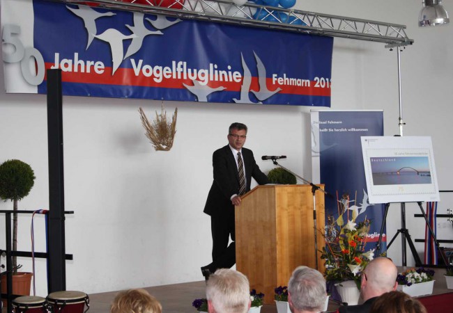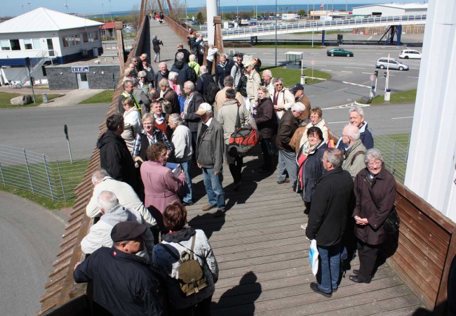 So standen bereits am ersten Tag mehrere Höhepunkte auf dem Plan. Nach einem Fotostopp an der Fehmarnsundbrücke, die an jenem 30. April exakt 50 Jahre alt wurde, und einem gemeinsamen Mittagessen hatte die Gruppe Gelegenheit, an einer sehr aufwendig gestalteten Markenübergabe in Burg auf Fehmarn teilzunehmen. Am Rande dieser Übergabe sorgte ein deutsch-dänisches Postamt für die ersten Beleg-Möglichkeiten. Weitere sollten schon bald folgen, denn an Bord des Fährschiffs „Schleswig-Holstein“, das die Phila-Reisenden von Puttgarden nach Rødby brachte, wurde ein erster Schiffspost-Stempel abgeschlagen – und der war natürlich überaus begehrt.