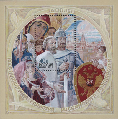 Am 11. Juli 1613 wurde Michail Fjodorowitsch Romanow in der Reichsversammlung Semski Sobor zum Zar Russlands gekrönt. Als Michail I. war er bis 1645 erster Zar der Romanow-Dynastie. Diese führte Russland im Besonderen unter Michails Enkel, Peter dem Großen, auf imperiales Niveau und folgte auf die Zaren-Dynastie der Rurikiden. Jedoch nicht unmittelbar: Zwischen den Regentschaften der beiden Familien lagen vielmehr turbulente Jahre der wirtschaftlichen Krise, innerer Spaltung, zweifelhafter Herrscher und der Bedrohung von außen. Diese Zeit ist als Smuta, die „Zeit der Wirren“, in die Geschichte eingegangen. Auch an sie erinnern die vorgestellten Sondermarken.