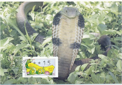 Am 30. April dieses Jahres erschien – übrigens erstmals seit 2008 – wieder eine neue Automatenmarke in Macau, dem einzigen Land weltweit, in dem noch Klüssendorf- und Nagler-Automaten im Einsatz sind. Die neue Ausgabe ist dem „Jahr der Schlange“ gemäß dem chinesischen Tierkreiszeichen-Kalender gewidmet. 2013 wird die Schlange durch die Kobra repräsentiert – ein schönes Exemplar sehen Sie auf der hier abgebildeten Maximumkarte, welche auch das ATM-Motiv vorstellt. Weil die neue Automatenmarke schnell komplett ausverkauft war, wurde im Anschluss wieder die bisher gebräuchliche ATM „Weltkulturerbe“ verwendet. Weil aber auch deren Bestand zur Neige ging, hat man einen Nachdruck veranlasst – und zwar mit einem zusätzlichen Texteindruck. Alle Infos zu diesen beiden neuen Macau-Automatenmarken liefert Ihnen unser Experte Thomas von Loeper im „Länder-Spiegel“ der kommenden BMS-Ausgabe, die am 30. August erscheint. Abonnenten haben Sie bereits ein paar Tage früher im Kasten.