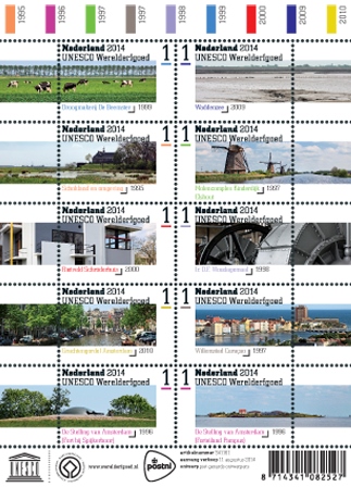 In den Niederlanden jedoch ist keine der vorhandenen Stätten auf der Roten Liste für bedrohte Stätten des Welterbes geführt und die niederländische PostNLzeigt die Stätten in einem Satz mit 10 Sondermarken um auf das Erbe und auf einen Besuch derer aufmerksam zu machen: