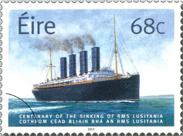 Als das seiner Zeit größte Passagierschiff, die britische RMS Lusitania, am 7. September 1907 Liverpool zur Jungfernfahrt verließ waren etwa 200.000 Schaulustige am Hafen versammelt, um den bis zum letzten Platz ausgebuchten Liner auf seinem Weg nach New York zu verabschieden. Während des Ersten Weltkrieges wurde das Schiff durch ein deutsches U-Boot vor der Küste Irlands versenkt – die irische Post erinnert mit zwei Briefmarken an dieses Ereignis.
