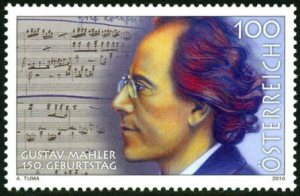 Und obwohl Alma letztlich doch bei ihm blieb, erschütterten und zehrten ihn die Ereignisse dieser letzten Jahre seines Lebens stark aus. Dies lässt sich auch in Mahlers späten Arbeiten, dem sinfonischen „Lied von der Erde“ zum Beispiel, hören. Melancholisch bis sinister erscheinen freilich auch frühere Werke, was etwa bei den „Kindertotenliedern“ bereits durch den alarmierenden Titel angezeigt wird. Jetzt jedoch verbrauchten sich Mahlers Kräfte und Zeit schnell, entglitt und verabschiedete sich der sinnierende Künstler von der Welt. Seine Zehnte Sinfonie blieb unvollendet. Mahler starb am 18. Mai 1911 in Wien, knapp einen Monat vor seinem Geburtstag am 7. Juli. Nach der Verschlechterung seines Gesundheitszustands war er aus New York, wo er unter anderem an der Metropolitan Opera im Zuge eines lukrativen Angebotes wieder dirigiert hatte, an diesen seinen Ort des künstlerischen Triumphs und verhärteten, institutionellen Widerstands, des aufbrauchenden Wirkens und Lebens zurückgekehrt. Auf Briefmarken ist Gustav Mahler bisher in 11 Ländern gewürdigt worden.