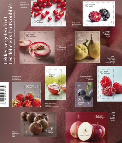Der belgische Briefmarkensatz vom 29. Juni diesen Jahres führt noch andere Obstsorten neben dem Wildapfel auf: Preiselbeere, Pfirsich, Quitte, Walderdbeere, Stachelbeere, Heidelbeere, Himbeere und die Mispel.