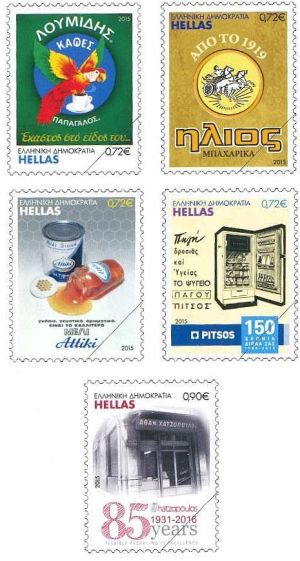 Am Sonntag, 14. Februar, erscheinen die neuen Briefmarken über Firmenzeichen, Logos und Produkte, die Geschichte schrieben und schreiben. Als Motive dienen dazu frühere Werbeplakate, auf denen Kaffee Loumidis Papagalos, Attiki-Honig, Ilios-Gewürze und elektrische Haushaltsgeräte des Herstellers Pitsos vorgestellt werden. Sie erscheinen viermal im Wert von 0.72 Euro und einmal zu 0.90 Euro.