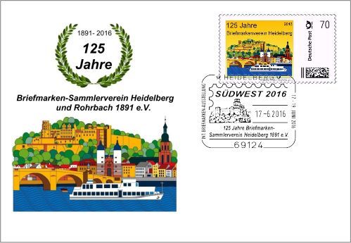 Der Briefmarken-Sammlerverein gibt an dem Wochenende Sonderstempel heraus, die vom „Erlebnis: Briefmarken“-Team Pforzheim abgeschlagen werden. Zu sehen sind das Logo der Ausstellung, die Alte Brücke in Heidelberg und das Heidelberger Schloss sowie ein 5-Ringstempel 75 Baden. Auch zwei Marken Individuell sowie Belege erscheinen. Kontakt: Christian Klouda, Kolbenzeil 12, 69126 Heidelberg, Tel. 06221 / 373331, E-Mail:?Christian.Klouda@Briefmarken-Suedwest.de.
