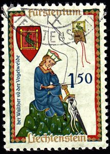 Der Epiker Heinrich von Veldeke und der Lyriker Walther von der Vogelweide, nach Miniaturen aus der Manessischen Liederhandschrift.