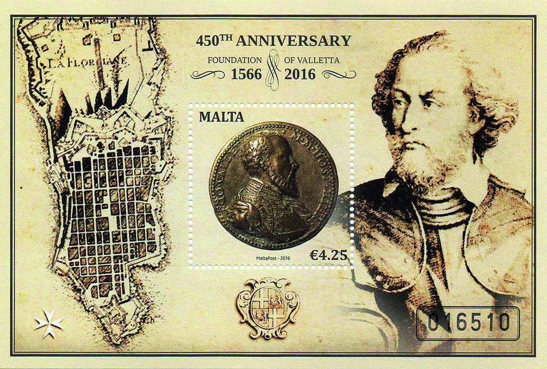Großmeister Jean de la Valette grün­dete die heutige Hauptstadt Maltas Valetta (MiNr. 1922, Block 67).