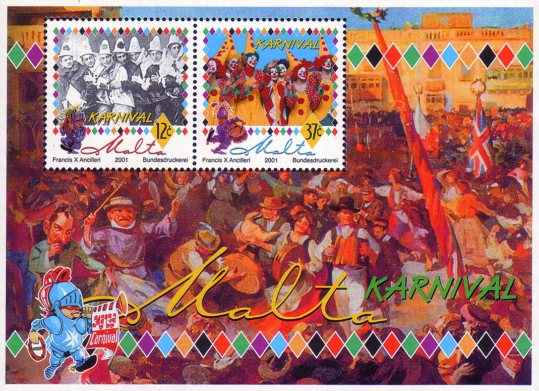 Die Karnevalswoche wird auf Malta in traditioneller Weise begangen, in den Tagen vor der Fastenzeit wird ausgelassen gefeiert. Umzugswagen werden geschmückt und Kinder laufen in ausgefallenen Kostümen herum. Mittel­punkt des Treibens ist Valletta, doch überall auf den Inseln zelebrieren die Orte ihre eigene Version der Festlichkeiten (MiNr. 1157, 1158, Block 21).