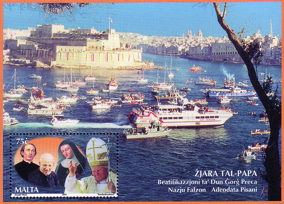 Über 90 Prozent der 430000 Maltesen bekennen sich zum römisch-katholischen Glauben. Als letztes EU-Land legalisierte Malta erst 2011 die Ehescheidung. In den Jahren 1990 und 2001 besuchte Papst Johannes Paul II. den Inselstaat (MiNr. 1169, Block 22).