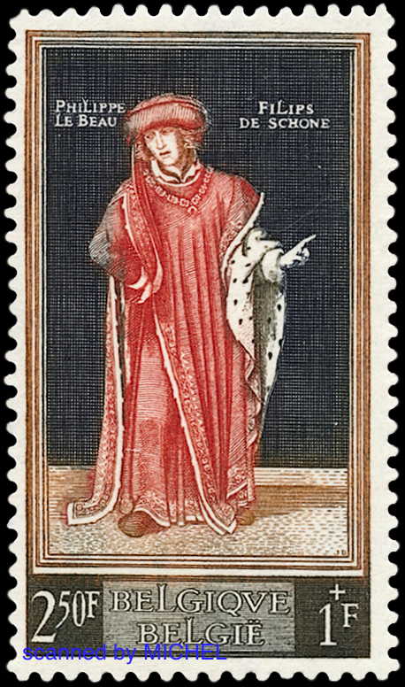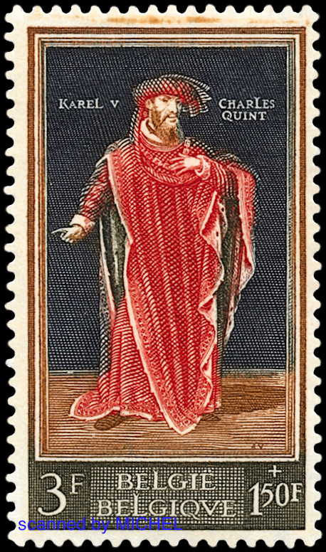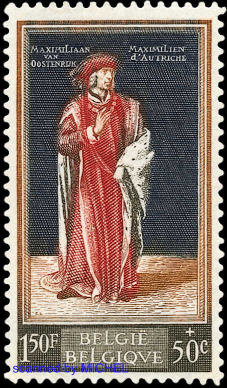 Drei Monarchen, von Künstlerhand im Mehrfarben-Stichtiefdruck porträtiert: Links sehen wir Maximilian I., König und Kaiser des Heiligen Römischen Reichs. In der Mitte steht Philipp der Schöne Modell, Herzog von Burgund und König von Spanien. Rechts zeigt sich der römisch-deutsche Kaiser Karl V. in prächtigem Ornat, MiNr. 1157 bis 1159 (Abb. dieser Seite Schwaneberger Verlag).