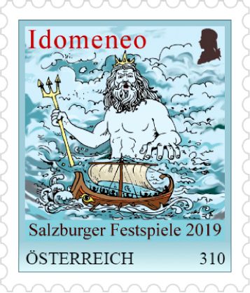 Am 20. Juli 2019 ist von 13 bis 17 Uhr im Schloss Mirabell (Aufgang Marmorstiege), Mirabellplatz 4, das Sonderpostamt geöffnet. Für das diesjährige Belegprogramm wurde die Oper „Idomeneo“ von Wolfgang Amadeus Mozart ausgewählt.