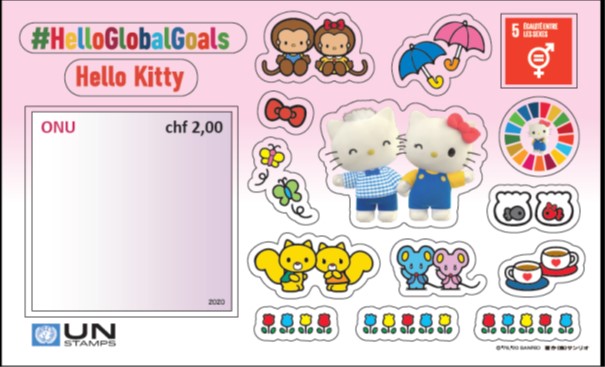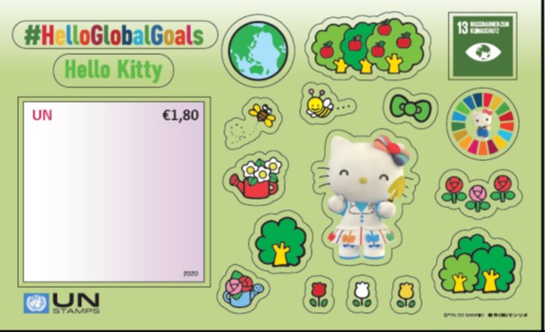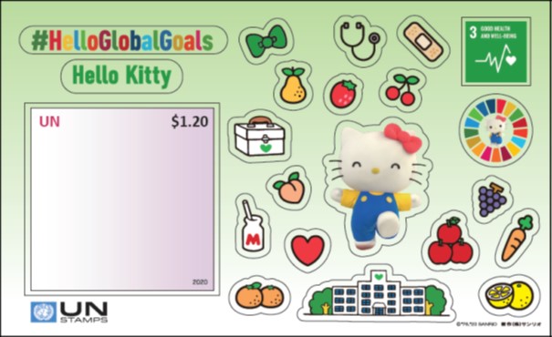 Am 19. März 2020 gibt die Postverwaltung der Vereinten Nationen sechs Kleinbogen aus. Auf den Vignetten sind Motive mit den beliebten „Hello Kitty“-Figuren des Unternehmens Sanrio aus Japan zu sehen. Sie behandeln sechs der insgesamt 17 Ziele für nachhaltige Entwicklung, die von den Vereinten Nationen formuliert wurden, zum Beispiel Ziel Nummer 4, „Hochwertige Bildung“, Ziel 11, „Nachhaltige Städte und Gemeinden“, sowie Ziel 14, „Leben unter Wasser“.
