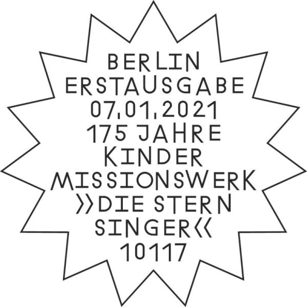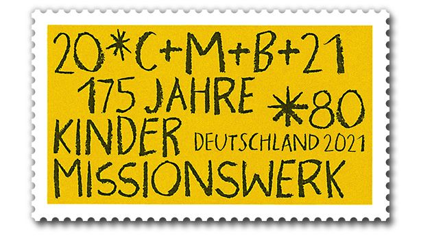 Eine Sondermarke vom 7. Januar 2021 feiert das 175-jährige Bestehen des Kindermissionswerks der katholischen Kirche in Deutschland. Der Ursprung des Kindermissionswerks liegt im „Verein der heiligen Kindheit“, der 1846 in Aachen gegründet wurde.