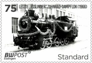 Zur Erinnerung an den Gründungstag des Lokomotivenbauers vor 175 Jahren hat der private Postdienstleister BWPOST-Esslingen am 1. April 2021 den Briefmarkensatz „Edition Esslinger Eisenbahnen“ mit fünf Werten zu 55 Cent, 75, Cent, 90 Cent, 150 Cent sowie 260 Cent herausgegeben. Mit den selbstklebenden Marken lassen sich Postkarten sowie die Briefformate Standard, Kompakt, Groß und Maxi frankieren. Hinzu kam eine Ersttagskarte mit den fünf Werten und einem Stempel vom Ausgabetag, deren Kleinauflage von 150 Exemplaren bereits nach einer Woche ausverkauft war. Die selbstklebenden Marken sind in Bögen zu zehn Stück je Wertstufe erhältlich. Auf dem Bogenrand der jeweiligen Marken stehen technische Daten und Informationen zur abgebildeten Lokomotive. Interessierte Sammler können die Marken im Internet unter https://esslingen.bwpost.net/briefmarken-kaufen.html über den Online-Shop der BWPOST-Essbeziehen.