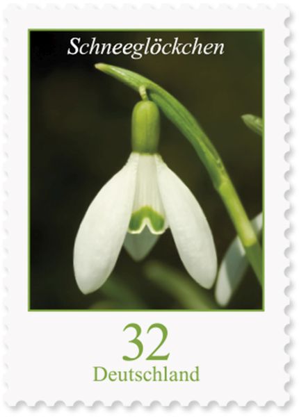 Ihrer alten Dauermarken-Reihe „Blumen“ fügt die Deutsche Post am 3. Januar 2022 zwei weitere Werte hinzu. Der lateinische Name des Schneeglöckchens lautet Galanthus nivalis. Es gehört zur Familie der Amaryllisgewächse. Der Name ist eine Ableitung von den griechischen Wörtern gála, Milch, anthos, Blüte, und nivalis, verschneit. In Deutschland trifft man nur das Kleine oder Gewöhnliche Schneeglöckchen an. Es wächst in Mittel-und Südeuropa vor allem in Laubwäldern.
