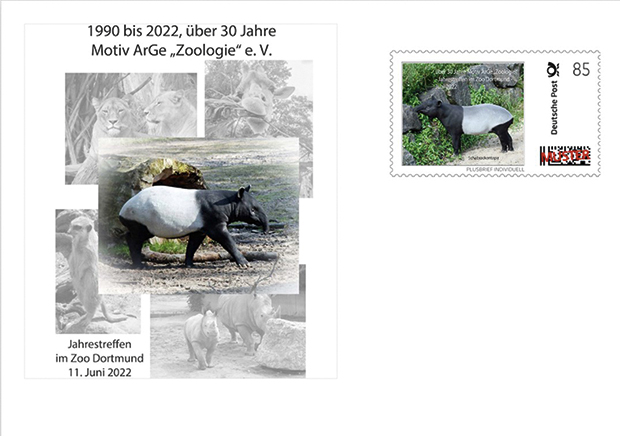 Aus diesem Anlass und aufgrund des mehr als 30-jährigen Bestehens der ArGe wird eine Ganzsache Individuell mit einer Tierbildercollage im Zudruck sowie einem Schabrackentapir im Wertstempel Individuell aufgelegt. Der Entwurf stammt von Dirk Römer. Darüber hinaus wird ein Sonderstempel, ebenfalls mit der Abbildung eines Schabrackentapirs, verausgabt.