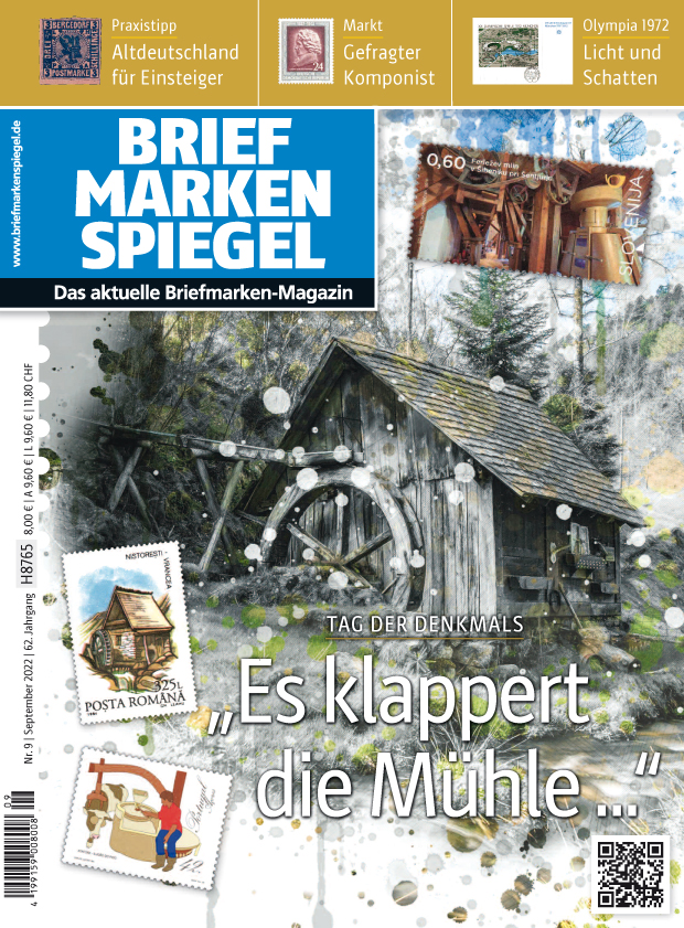 Ein interessantes Highlight liefet uns jährlich der September: Deutschlandweit können sich die Menschen am „Tag des Denkmals“ altehrwürdige Gemäuer anschauen und etwas von deren Geschichte erfahren. Dass Denkmäler auch philatelistisch und numismatisch Außergewöhnliches zu bieten haben, zeigen im Thema des Monats und im Münzen-Spiegel Dietrich Ecklebe und Helmut Caspar. Um Historisches geht es auch im Praxistipp von Michael Burzan: Er beschreibt in seinem Servicebeitrag, wie man sich eine Altdeutschland-Sammlung sinnvoll und preisgünstig aufbauen kann. Außerdem liefert der September-BRIEFMARKEN SPIEGEL drei Beiträge und einen Lesetipp zu den Olympischen Spielen 1972 in München.