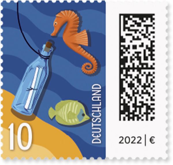 tun haben, passt das Motiv zur noch jungen Dauermarkenserie der Deutschen Post. Andererseits handelt es sich bei der Flaschenpost nicht um eine surrealistische Kreation, wie zum Beispiel den Briefbaum vom 4. August 2022 (MiNr. 3704), sondern um eine reale Erfindung.