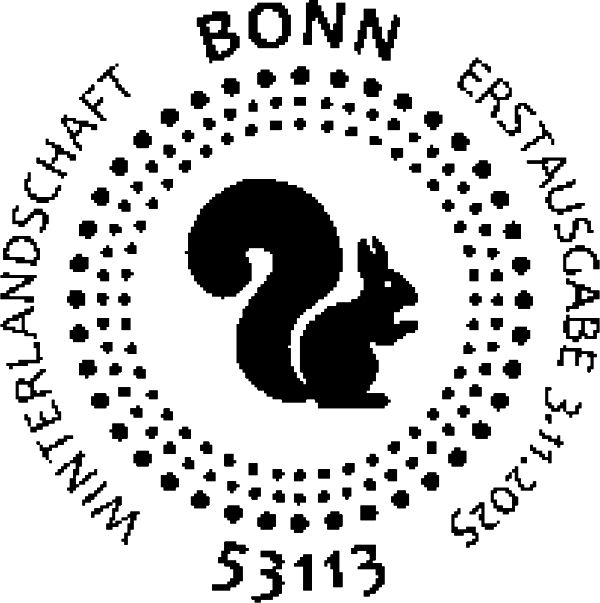 Thomas Steinacker gestaltete eine Sondermarke, die den Winter einleitet: eine abendliche oder nächtliche Schneelandschaft wird vom Mondlicht erleuchtet. Ein Eichhörnchen, ein Vogel und ein Hirsch erinnern an Kinderbuchillustrationen und Zeichentrickfilme.